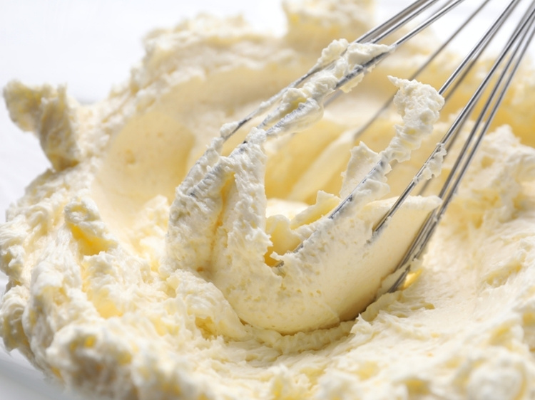 - Die weiche Butter, Zucker und Salz in eine Schüssel geben und mit einem Handrührgerät mindestens 5 Minuten lang aufschlagen. Die Masse soll hell aussehen.